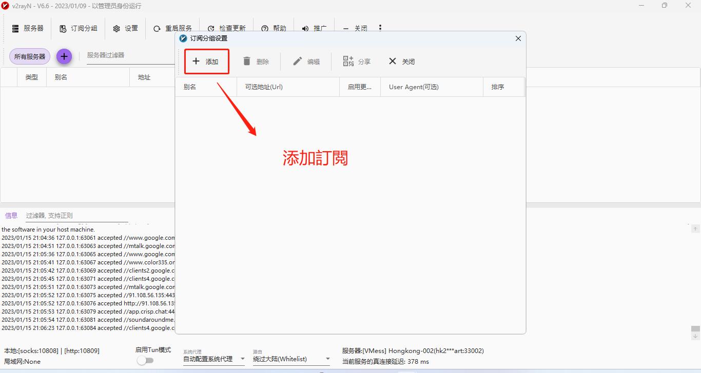 3,客戶端下載解壓後點擊v2rayN.exe(不用安裝,目前只有中文簡體版),打開客戶端,訂閱設置